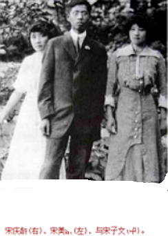 宋慶齡(右)、宋美齡(左)、與宋子文(中)。