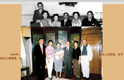 下圖 1942年,宋氏兄弟及其夫人在美國華盛頓共度耶誕節時留影。左起:宋子安與夫人吳其英、宋子良夫人席曼英、宋子文與夫人張樂怡、宋子良