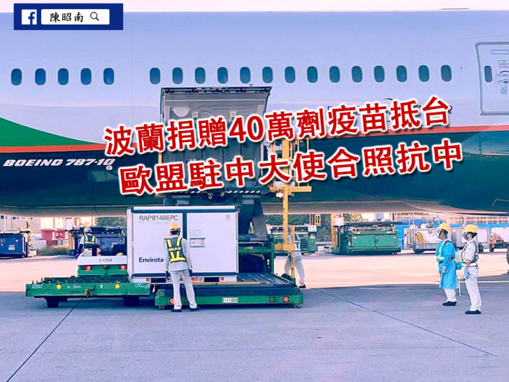 【波蘭捐贈40萬劑疫苗抵台●歐盟駐中大使合照抗中】