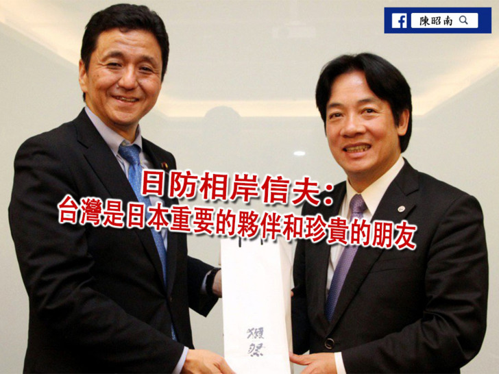 【日防相岸信夫:台灣是日本重要的夥伴和珍貴的朋友】