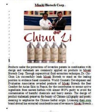 在英國劍橋大學出版社出版的書「LAW, POLITICS and REVENUE EXTRACTION on INTELLECTUAL PROPERTY」中,介紹了台灣群麗漢方生技股份有限公司產品於法國榮獲由世界評比會評為"最適合亞洲人肌膚奬"的殊榮!