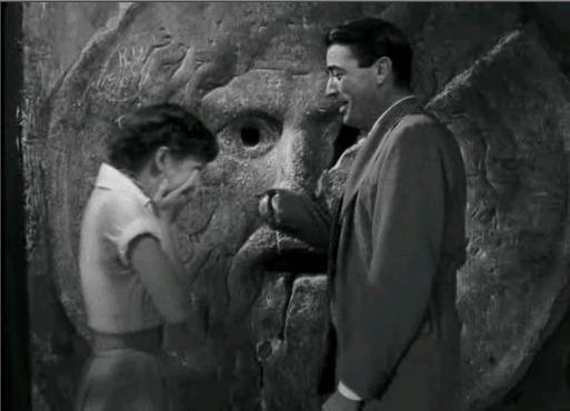 而現在真實之口之所以會這麼有名,乃是因為1953年的羅馬假期(Roman Holiday)這部電影所引起的" Audrey Hepburn ( playing a princess) and Peck (playing a reporter) visit The Mouth of Truth and Peck relates the legend." 劇中Peck 先要Audrey Hepburn 將手伸進真實之口,測試一下是否為說謊者;然後 Peck為了捉弄Audrey Hepburn ,故意將手藏在袖中,然後以假手來戲弄 Audrey Hepburn 。我是沒有看過這部電影,但是吸引我的好奇心,下次回台灣時再去買DVD來看,欣賞這位巨星的風采!