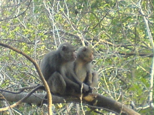 走著走著怎跟N年前走的都不一樣,沿著階梯還有柏林圍牆一直走也沒見到傳說中會搶食物的山寨王,嘴裡一直都嚷著,同學就說這裡不是柴山所以沒有猴子.蛤壽山跟柴山不是相通ㄉ嗎?????就在接近好漢坡前供人歇息的涼亭處猴子終於出現了好開心喔幫它們照一張合照耶還有一隻猴媽媽的獨照喲.後來下山的路上兩旁出現好多猴子阿,我興奮ㄉ拿起手機正要拍時,同學叫我不要拿.....噢!!已經來不及了,我拍了而猴子也一直向我移動,嚇的我一直跑,因為"猴多勢重"我們人丁單薄呀,真是猴腮雷