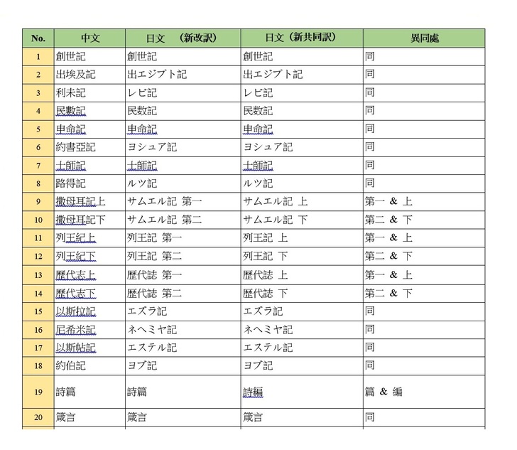 聖經六十六卷書名 中日文對照-舊約