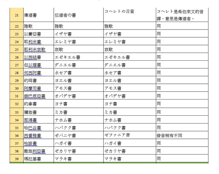 今天,我們先來看一下舊約的書名,日文是怎麼說的~