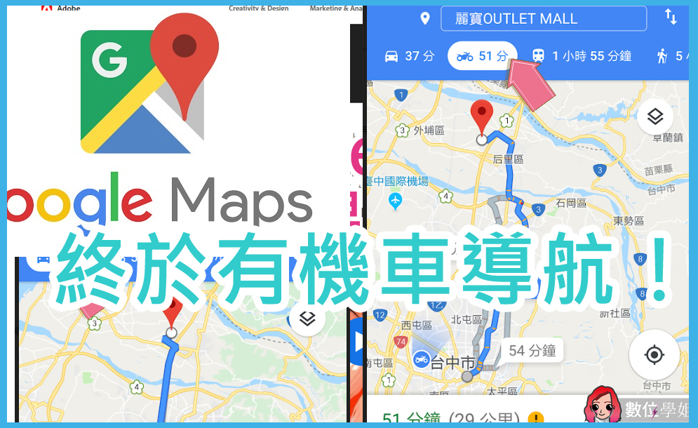 根據調查台灣交通工具佔比,以機車代步民眾佔5成以上,大家是否有發現,地圖功能已新增機車導航功能。