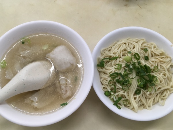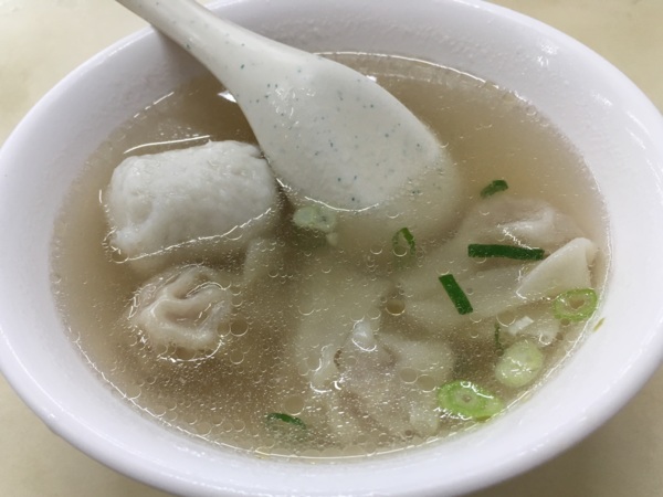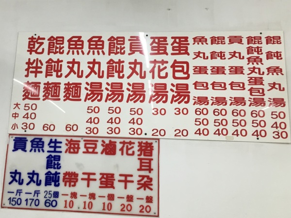小碗乾拌麵30元,小碗餛飩魚丸湯30元。