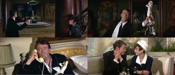 值得一提,本片是赫本最後一部演年輕小姐,1967年「儷人行」(Two for the Road),她就開始演人妻人母,演「偷龍轉鳳」37歲,仍活潑動人,服裝造型一流,幾場吻戲神情尤其精準,閃閃發光,特別是,男女主角要離開片中關鍵場景那間儲藏室時,赫本眼波流轉斗室無限留戀,真是神來一筆,傳達甜蜜愉悅非常到位。