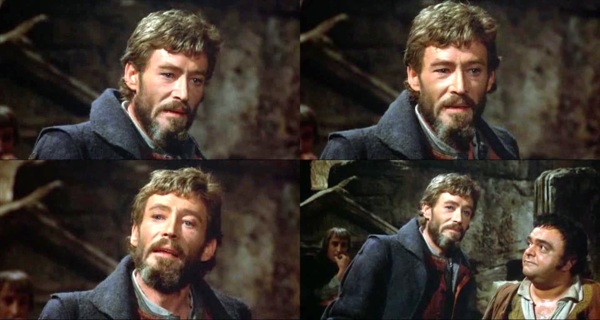 另外,片中醜醜老老化妝不怎麼高明的唐吉軻德(Don Quixote)篇幅較多,但一回到塞萬提斯(Cervantes),彼得奧圖(Peter O'Toole)還是非常英俊好看,他這滿臉落腮鬍造型,除之前「冬之獅」(The Lion in Winter,1968),後來「魯賓遜漂流記」(Man Friday,1975)再現,華視1980年代播過此片,如今不易得見。