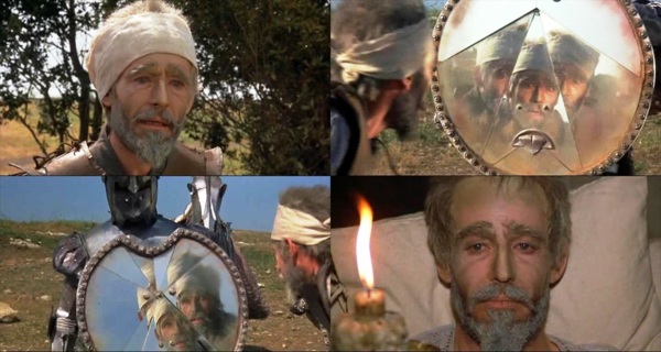 Alonso姪女希望叔叔快回家,未婚夫用計假裝魔法師,率領鏡子騎士隊,路上攔住Alonso,讓他認清鏡中人根本愚蠢老頭,所謂女神實為妓女,所有情節都是瘋狂幻想。