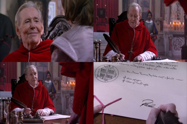 彼得奧圖(Peter O'Toole)特別演出7集,每集平均3到5分鐘,戲分不重,或站或坐,沒有太多肢體動作。但聲音表情十分引人,甚為搶鏡。任何台詞被他講來,就很有韻味及氣勢,例如第5集,感嘆英國國王被Anne Boleyn迷惑,甩下信箋(不怒則威),義正詞嚴告誡主教(亦是慶幸):「你我都成功避開了女人的詭計,禁慾真是一大解脫」。(You and I, Campeggio, have done well to avoid the craft of women. Celibacy is an immense relief.)