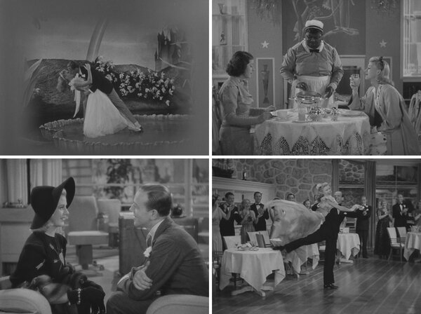 特別講一下,劇中演Ginger Rogers家庭幫傭是Hattie McDaniel(1893-1952),台詞只有四句,包括前後說了兩次「美乃滋」(Mayonnaise),第一次疑問句,第二次生氣丟下盤子在餐桌。她聲音表情突出,辨識度高,隔年「亂世佳人」(Gone with the Wind,1939),演女主角Vivien Leigh(1913-1967)奶媽,台詞多很多,以最佳女配角之姿,為非裔黑人得到第一座奧斯卡金像獎。
