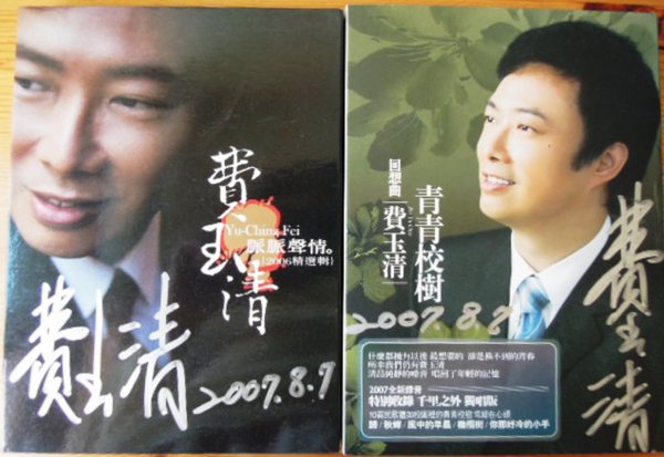 我趕緊拿出自己的「青青校樹」及「脈脈聲情精選集」,費玉清就著大理石櫃檯窄窄桌面,仔細為區區三張cd寥寥兩張海報寫著自己名字,這一連串畫面,如同費玉清在演唱會一定會說得一句:「有些時候言語不用多」。