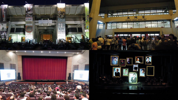 傍晚天未暗下,我先去場外走走,門口紀念品攤位已置妥,工作人員見我駐足,紛遊說選購,我回說早已購齊;見我趨前拍照,非常熱心幫我翻開相冊:「要照就翻開照」;見我持續按快門,一旁踱步自言自語:「聽說這人還沒結婚」。