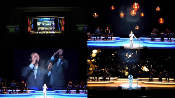 看著偌大銀幕,舞台上費玉清45度仰頭高唱、閉上眼睛下意識鬆鬆領帶,這些獨一無二招牌動作,只能不捨分秒強記腦海;「玫瑰花瓣的信箋」認真唱著,輔以動人手勢還給對方:「那封我收藏好久裝滿玫瑰花瓣的信箋」;還有字字柔中帶剛敲入心房:「我是被你囚禁的鳥,已經忘了天有多高…」,望向銀幕,我情緒比台北敏感甚多。