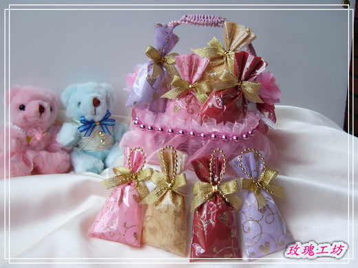 | 4.蝴蝶結為金蔥緞帶寬1公分- (1個蝴蝶結長約用16-17公分製成) |