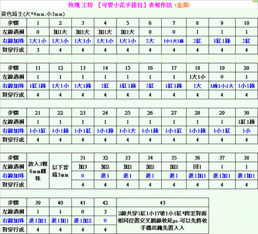 【可愛小花手提包】水晶串珠表格作法