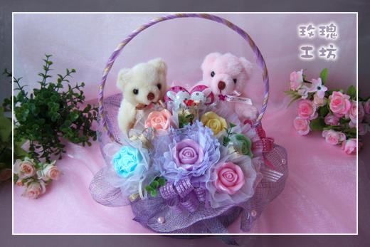 | ◆包張內容 : 5吋熊1對+玫瑰香氛手工皂6朵.精緻手工包裝 |