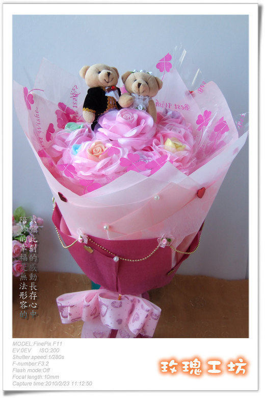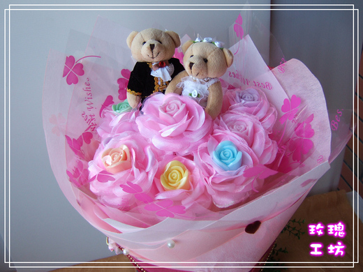 http://goods.ruten.com.tw/item/show?21002231154382 ◆包裝內容 : 婚禮小熊熊1對+玫瑰香氛手工皂11朵【或11顆甜蜜金莎巧克力】精緻手工包裝 |