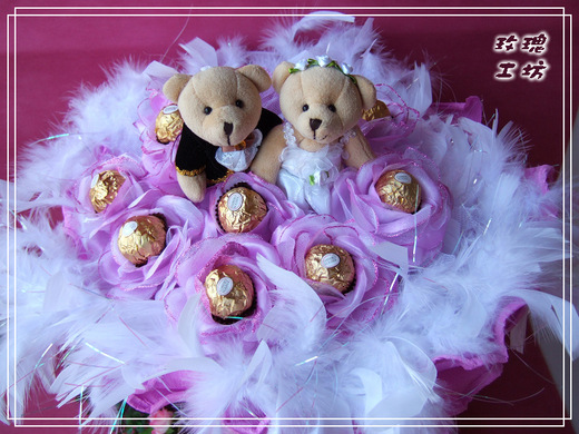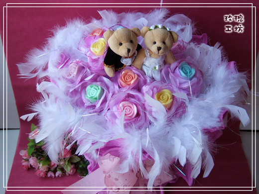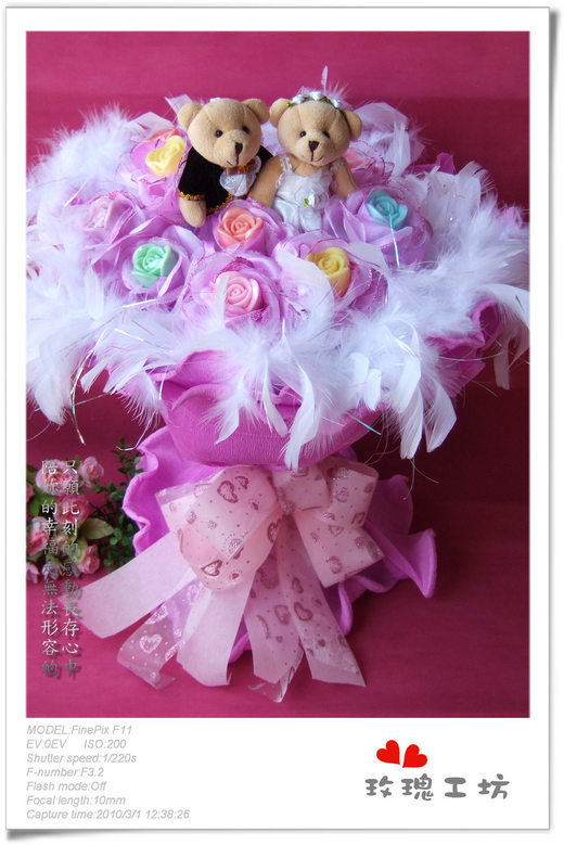 | ◆包裝主內容 : 婚禮小熊熊1對+玫瑰香氛手工皂11朵【或11顆甜蜜金莎巧克力】精緻手工包裝 |
