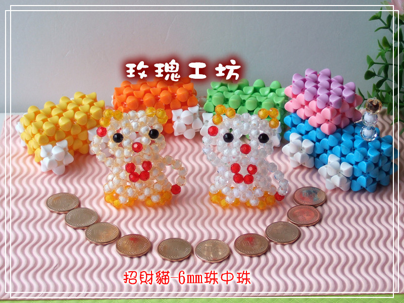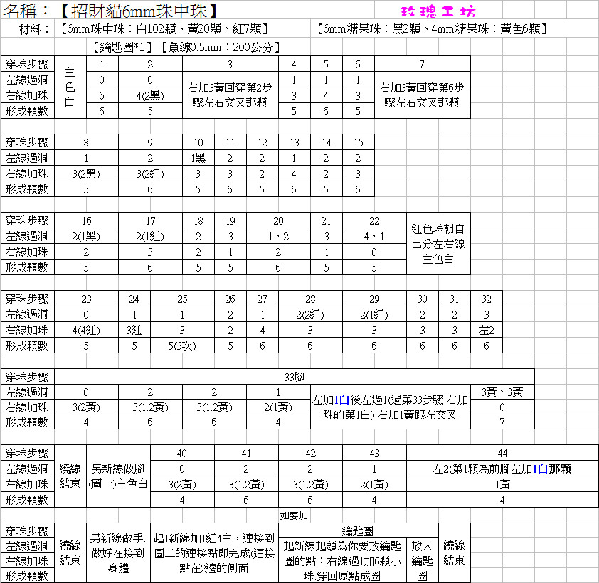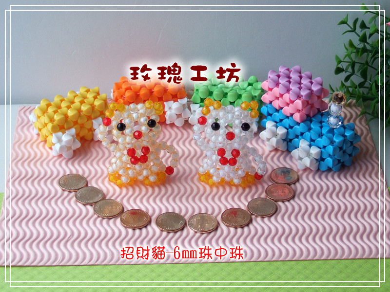 玫瑰工坊【串珠表格做法/招財貓/6mm珠中珠】