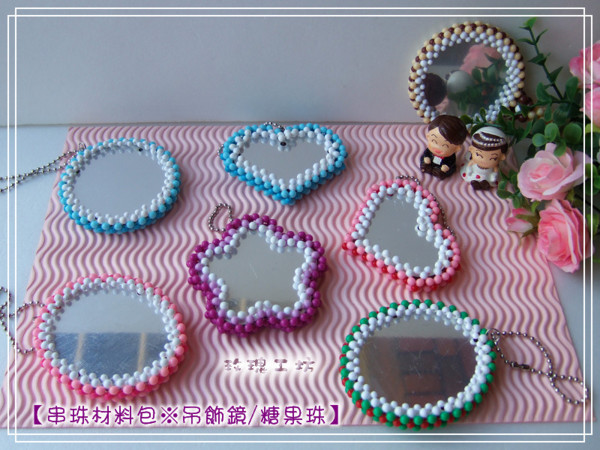 玫瑰工坊【6cm愛心吊飾鏡-糖果珠】串珠diy/串珠表格做法】