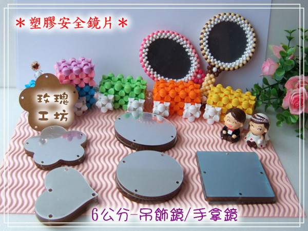 材料: 鏡子的正面是牛皮紙保護貼.(背面)是透明保護貼請在做成品時,先將保護貼撕下 |
