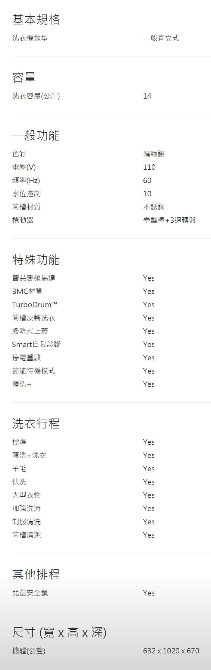 商品網址:【LG 樂金★限時搶購】Smart Inverter 智慧變頻系列 精緻銀 - 14公斤洗衣容量(WT-ID147SG)54FBA8264080006F