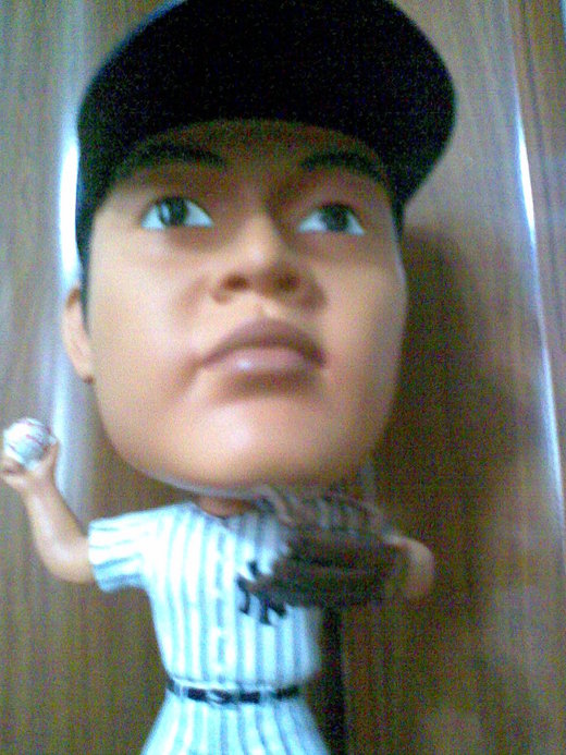 也發現到只要同事有經過她的辦公桌都會拍一下王建民公仔的頭,