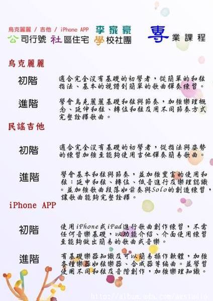 想要開辦吉他、烏克麗麗、iPhone APP的課程諮詢唷!
