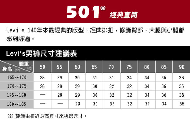 -於Levi’s官方網路旗艦館購買者可享有全台Levi’s專賣店/百貨專櫃免費修改褲長服務。