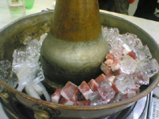 冰水火鍋的吃法據說是成吉斯汗發明的,他帶著士兵征戰數年,冰天雪地下將河冰敲碎煮上羊肉,只是不知道這杯天一神水是不是也是成吉斯汗研發出來的。