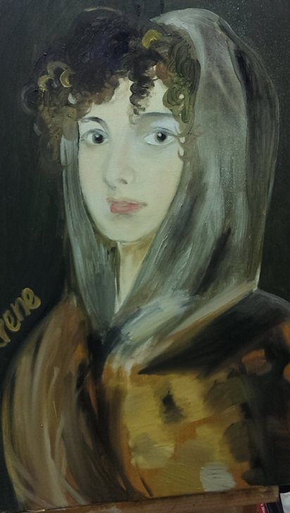 隨波真的很愛畫人物,同班的教友都喜歡畫風景及靜物,大概是小時候受少女漫畫的影響,喜歡漂亮女生,十五歲就畫出個900度大近視,不過當時一直是畫水彩,當了空服員之後及生病的三十幾年根本荒廢了我的所愛,還好教會開了油畫班,初初接觸,有點生硬,久了就會喚起心底的彩色細胞~~^^