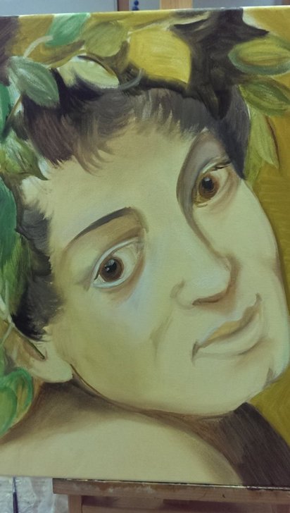 我喜歡這幅卡拉瓦喬的"酒神,因為輪廓清晰,所以畫起來順手,其實還差背景一點深淺,給格友們批評指教先