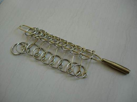 這個玩意解起來很繁鎖,與智力無關,因為是簡單重覆同樣的動作,解了再套,套了又解,可是我就是玩不膩,只要解上幾個環,就會不自覺地把它解完,一旦套上幾個環,就會認真地套完整才肯罷休。