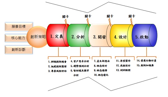 一般的創新創業者對於秘訣五:創新管理流程較不容易理解與運作,透過下圖及一個創新案例來解碼創新管理的五大步驟。