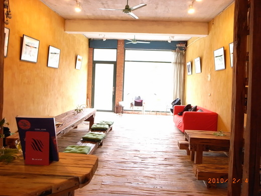 我們第一位認識的新朋友是薩雷斯咖啡館的年輕老闆小遊,一年前他隻身從台北來到梅花湖尋覓落腳之處,在朋友的介紹下看中眼前的透天厝,在闢荊斬刺的大規模整理後,出現今天的一片好光景,所以大家都稱他是這一帶的開山祖師,熱情寒暄問好後,年輕帥氣的小遊很親切的帶我們參觀二樓的背包客民宿,簡樸的臥床、舒適整潔的環境,牆上還有藝術家李老師繪製的壁畫,整體感覺和小游隨興自由的個性很相配,而且住宿費用一晚只收399元,相信對自助旅行的背包客來說,是個很不錯的落腳休息地;小游說:歡迎隨時來這裡喝咖啡,順便可以騎自行車環湖!