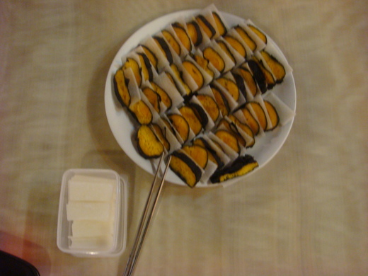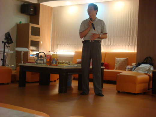 這次的期末聚餐,借到了卡拉OK室,分成四組--主食、'水果、甜品、湯、飲品。