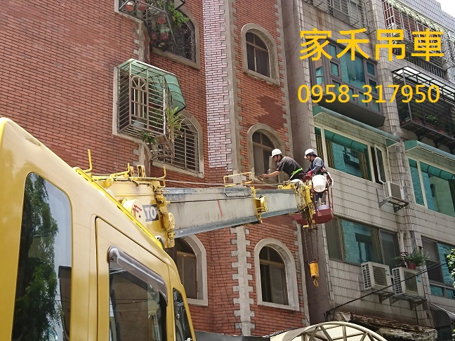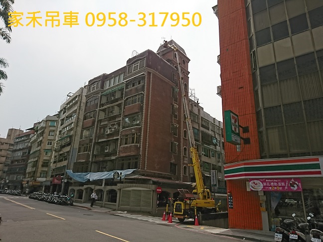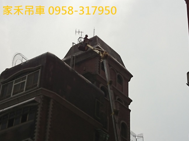 吊車出租,台北市忠孝東路二段,配合外牆修繕。。