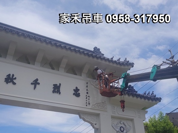 小螃蟹吊車出租,新北市新店區空軍烈士公墓,吊車配合牌樓油漆高空作業。。。