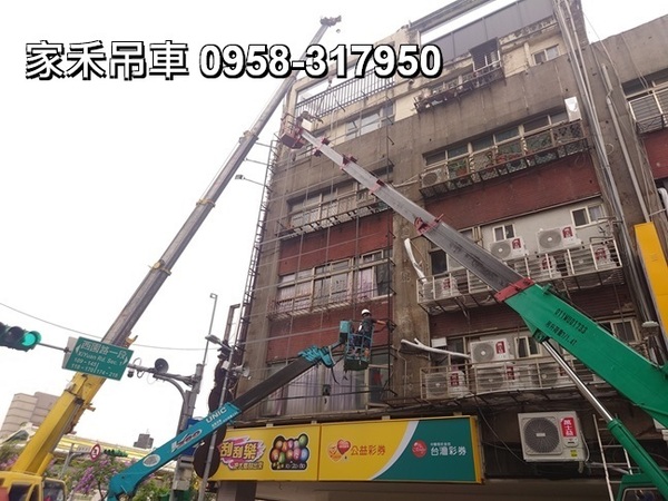 3.5噸吊卡車出租,新北市土城區上泰廣福天廈社區,配合更換外牆大理石板。。。