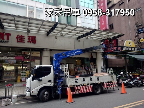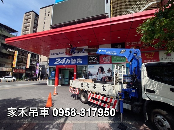 3.5噸吊卡車出租,台北市萬華區家樂福桂林店,配合更換燈具。。。
