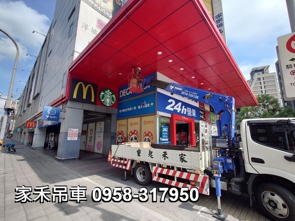 5噸吊卡車出租,新北市樹林區佳瑪樹林店,配合更換騎樓照明燈具。。。
