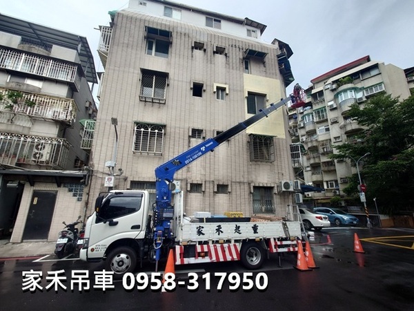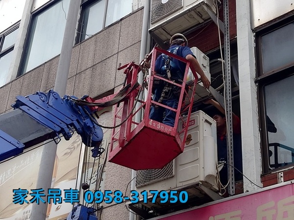 3.5噸吊卡車出租,台北市中山區長安東路民宅,吊車配合冷氣維修施工。。。