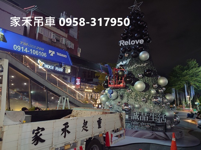 家禾吊車 / 台北市.新北市吊車出租, 小螃蟹吊車, 12噸螃蟹吊車, 3.5噸吊卡車出租 服務專線 : 0958-317950 黃先生 吊車出租,台北市林森北路錢櫃KTV前,吊車配合行道樹...