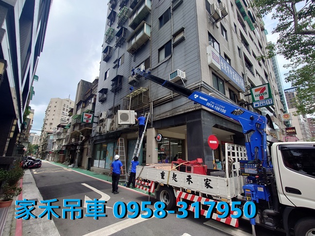 家禾吊車 / 台北市.新北市吊車出租, 小螃蟹吊車, 12噸螃蟹吊車, 3.5噸吊卡車出租 服務專線 : 0958-317950 黃先生 12噸小螃蟹吊車出租,中和景平路239巷新建大樓,配...