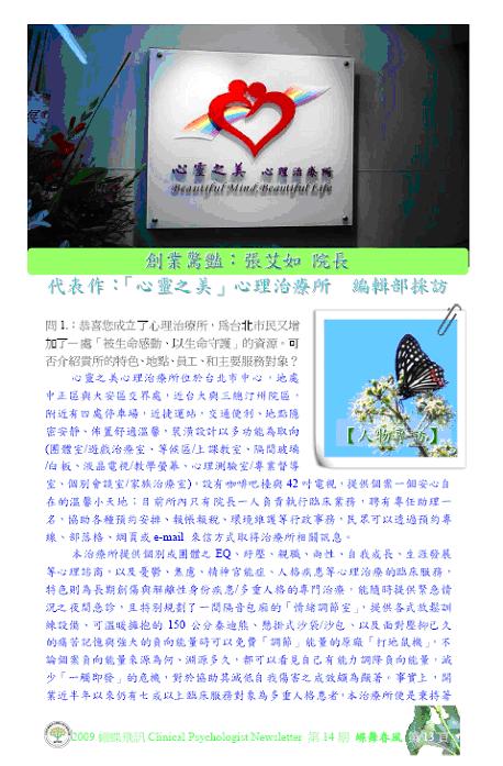 「蝴蝶飛訊」第 14 期 - 開業驚艷 ‧ 心靈之美心理治療所 (上)