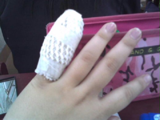 還是去年,正考著段考的日子哩,正在反省著墮落沒唸書的日子裡,愛上了籃球,愛上刷籃板的聲音,愛上過去那段歲月帶領我進入籃球世界的人,球在,人不在的悲,誰懂?? 打球的恍神會帶入人們走向黑暗的一面,我的手....扭到了,是那種整隻小拇指變紫色的樣子,一彎就會痛,本來手指看起來就很腫,而紫的發亮的它腫的莫名的厲害,而任性的我,都沒去看醫生,等它變好,可是表面上已經好很多了,但是,誰又知道骨子裡的叛逆.........