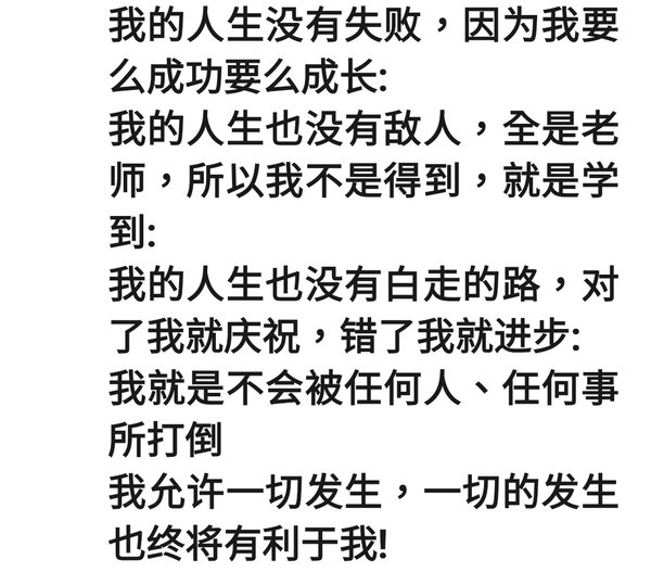 我的人生也没有敌人,全是老师,所以我不是得到,就是学到: