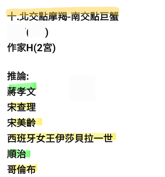 都是【北交摩羯-南交巨蟹】這一組,否則我也不會特別想到他,然後我又想到幾個歷史人物,也是一搜一個準。